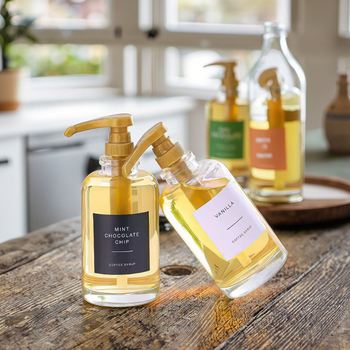 Hot Selling Premium 100ml Kaffees irup Klarglas flasche mit cremefarbener Plastik pumpe Heißer Honig mit sicherem Versiegelung styp